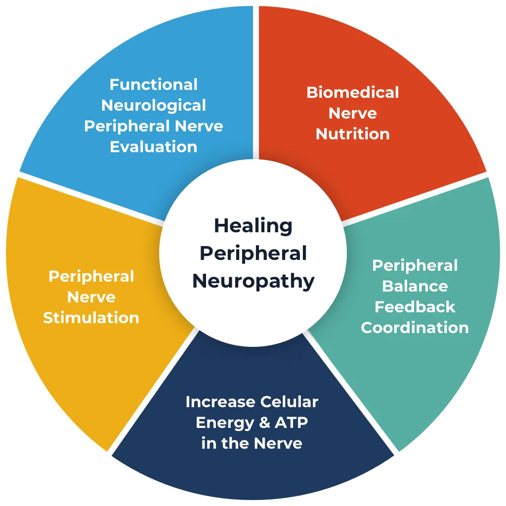 Our approach also stimulates the damaged nerves to reduce pain and improve balance while decreasing brain-based pain.